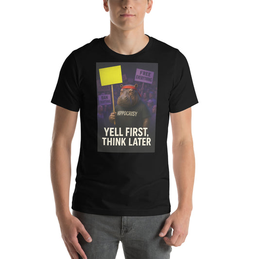 "Think first, yell later"- Hippocrisy Unisex t-shirt